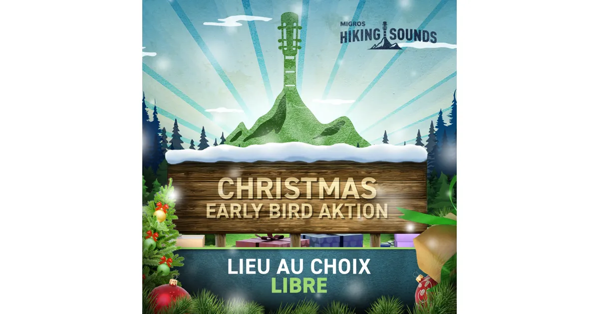 Avec le Christmas Early Bird Ticket, vous vous assurez, pour vous ou vos proches, un billet en édition limitée pour l'une de nos expériences Hiking Sounds très appréciées, et ce à un prix avantageux exclusif. L'offre est disponible pour une durée limitée et s'applique aux billets pour adultes, enfants et familles.